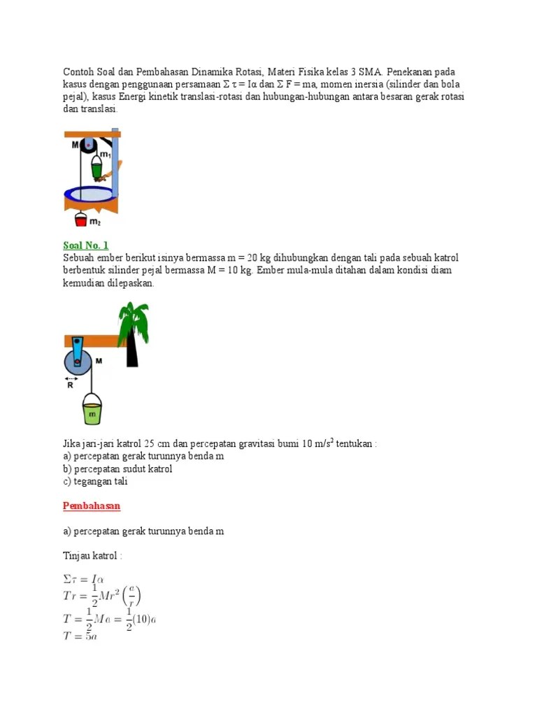 Dinamika rotasi dan keseimbangan benda tegar from . Sebuah batang homogen panjang l dan massa m salah satu ujungnya ditopang pada pasak (sumbu) yang . Soal dinamika rotasi a pilihan ganda pilihlah . Pembahasan bagian 2 dari 10 soal dinamika rotasi akan kita lihat pada tulisan di bawah. Sebuah benda bermassa 3 kg diikat dengan tali pada langit langit.